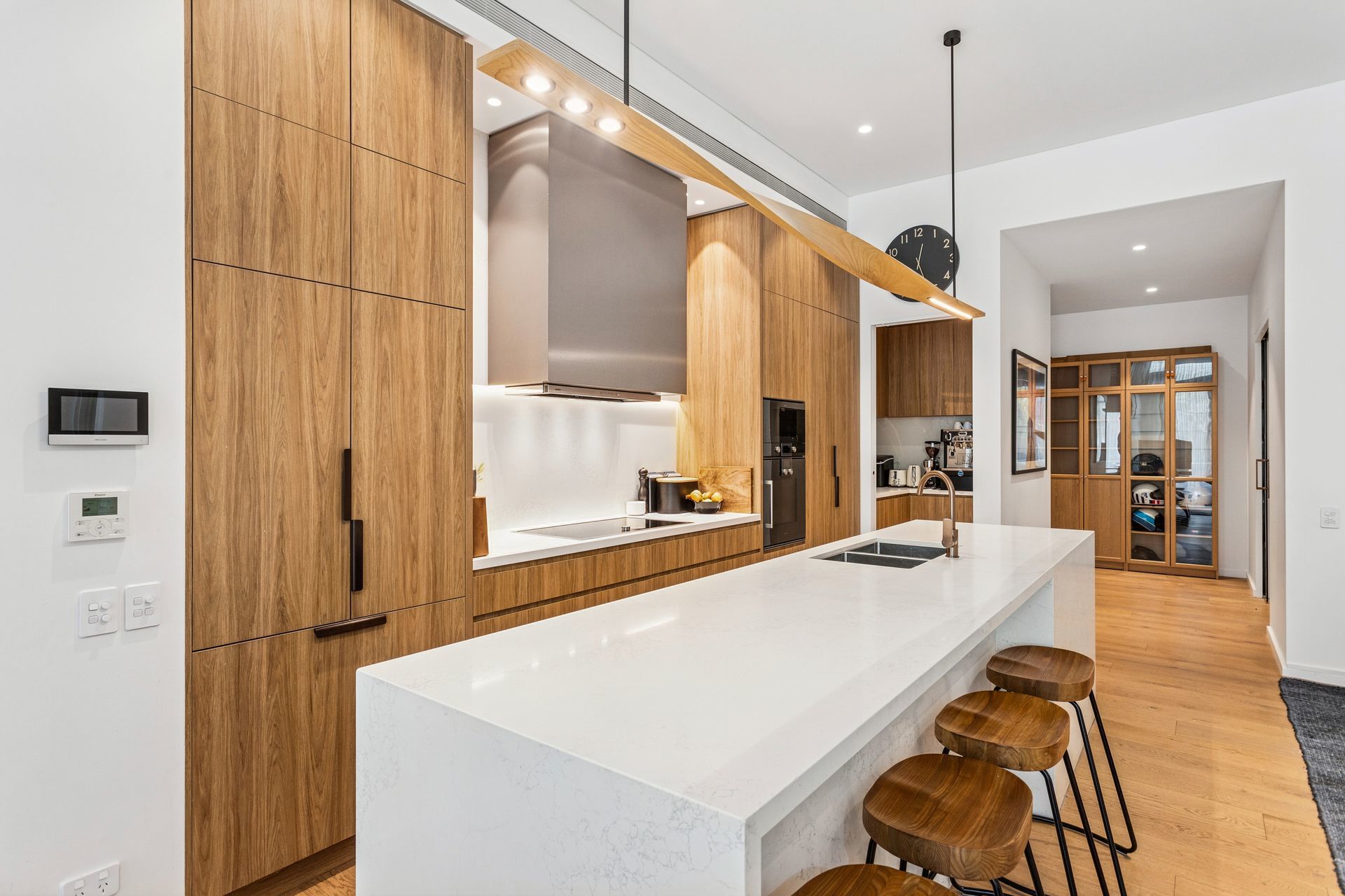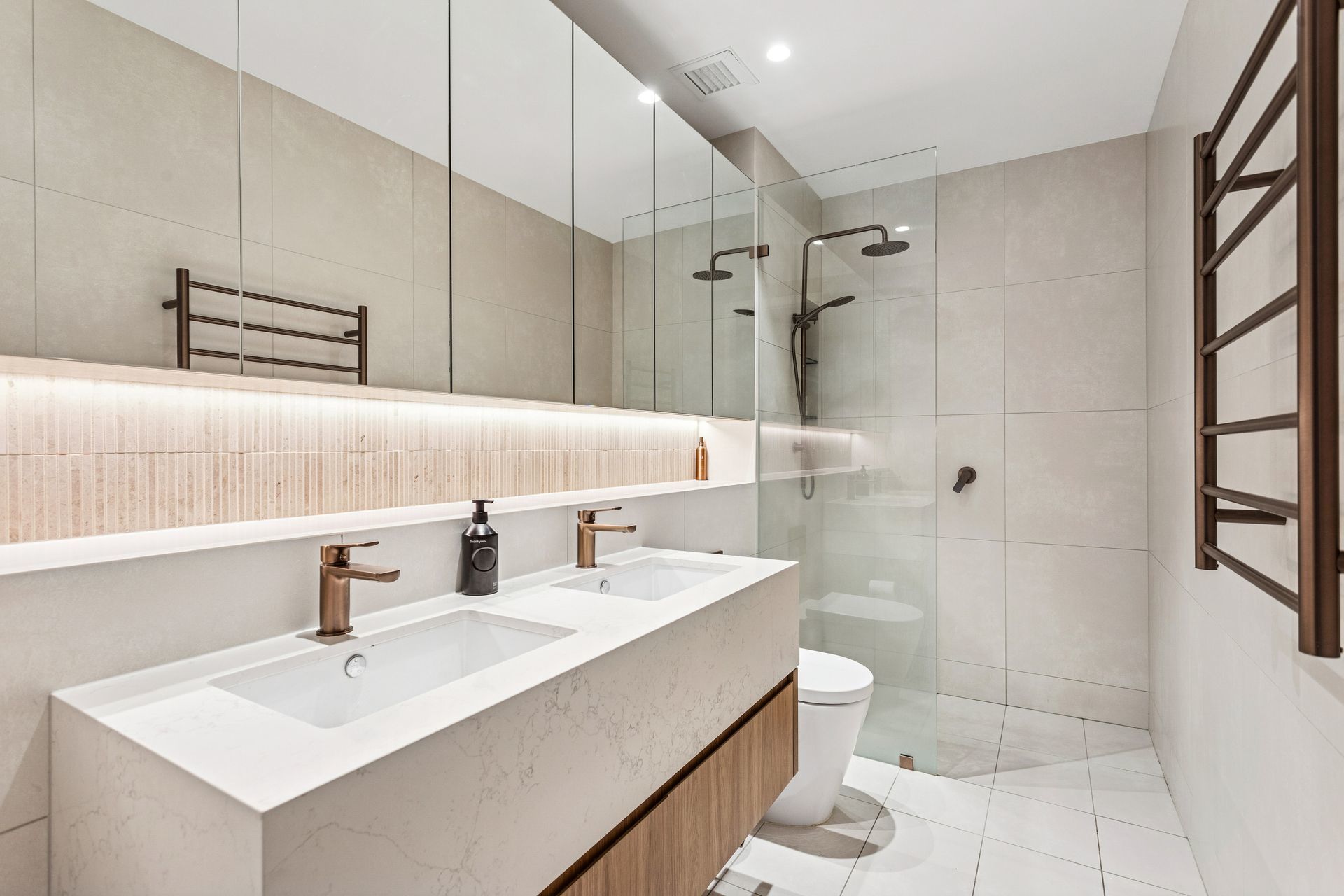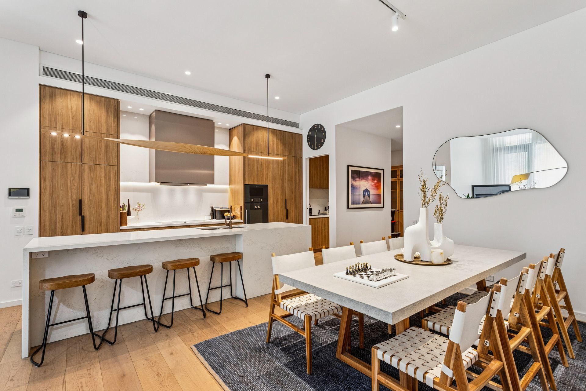 A stunning three-bedroom, two-bathroom ground floor apartment that perfectly balances modern living with natural tranquillity. Open plan living/kitchen/dining, all looking out to the wonderful 45sqm courtyard. Plus formal lounge/home office, large entry with built in cupboards, scullery, 2 side by side car bays and a 5sqm storeroom. Spanning 143 square meters of thoughtfully designed space, 3.5m high ceilings throughout and high end finishes, this residence offers comfortable accommodations for those seeking both style and substance.