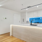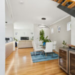 – Light and bright modern kitchen with 5 burner gas stovetop, double oven, dishwasher and plenty of storage space.