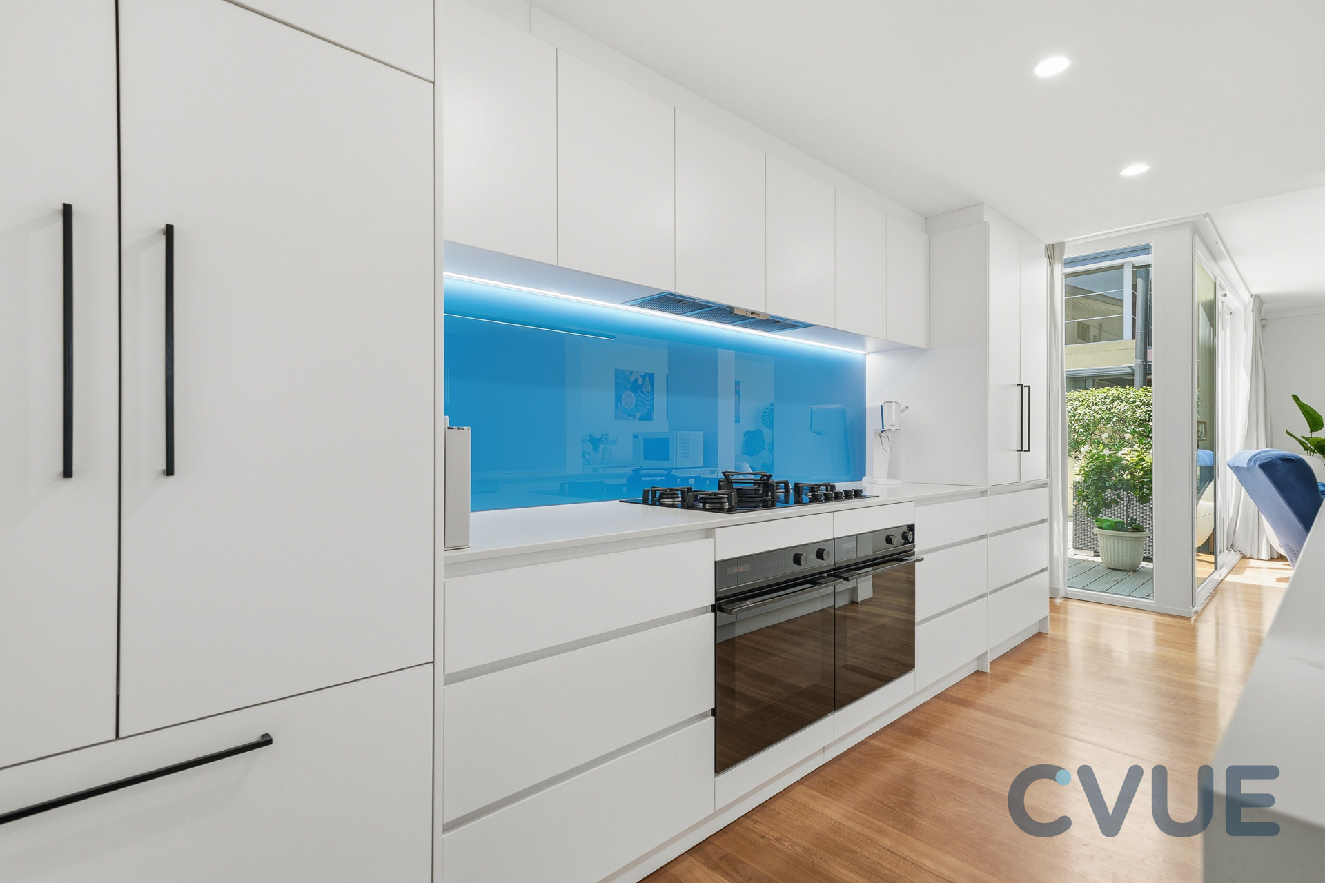 – Light and bright modern kitchen with 5 burner gas stovetop, double oven, dishwasher and plenty of storage space.