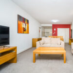 –	Open plan lounge/dining/kitchen area that opens to balcony